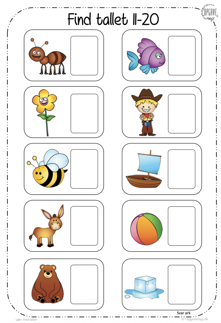 Legen er en oplagt bevægelsesleg, som kan bruges både ude og inde. Indeholder Skrive ark (Print et til hver elev) 10 tal kort med billeder